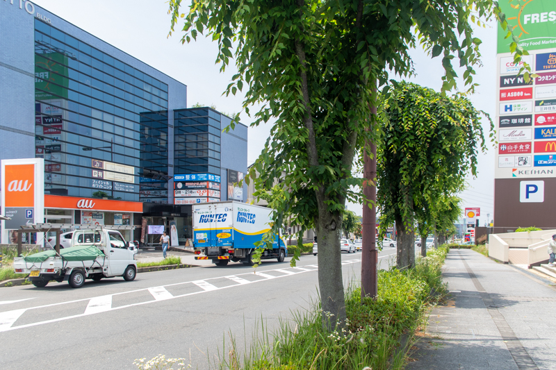 反対方向にはドコモショップなどがあり、進んでいくと交差点「松井山手」があります。