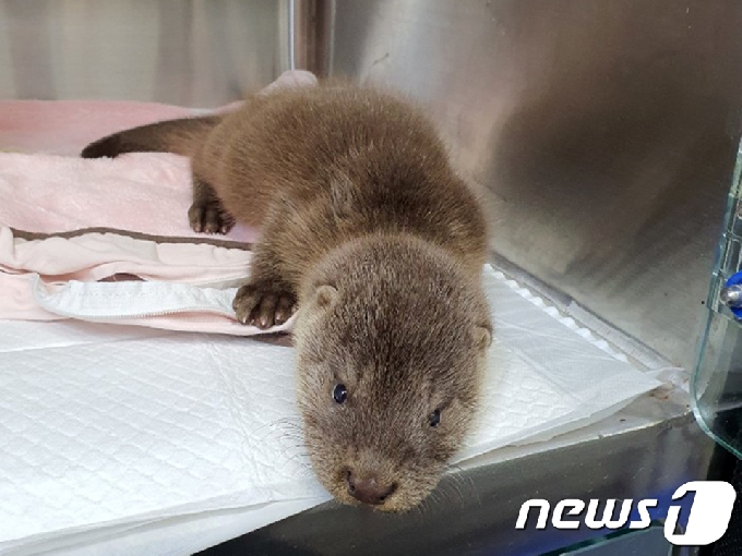 (포항=뉴스1) 최창호 기자 = 26일 경북 포항시 북구 죽장면 입암리 계곡에서 탈진 상태로 구조된 천연기념물 제330호인 수달 한마리가 포항 조은동물병원에서 치료를 받고 있다. 병원 관계자에 따르면 "지난 25일 포항시청 문화재과 직원들에 의해 구조된 수달은 2개월 정도된 어린 개체로 체력 회복 후 야생 적응 훈련을 위해 경북야생동물구조센터로 인계 할 예정이라고 밝혔다. (조은동물병원제공) 2020.8.26/뉴스1