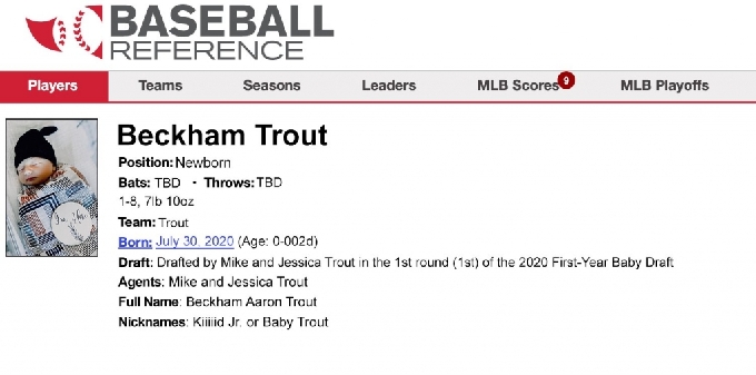 드래프트 순위는 '2020년 첫해 아기 드래프트에서 마이크 트라웃과 제시카 트라웃 사이에 1라운드 1순위 지명을 받았다'고 구단은 재치 있게 표현했다.